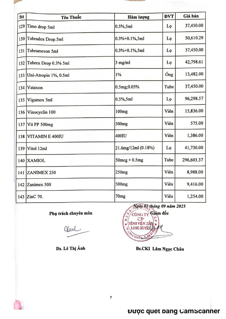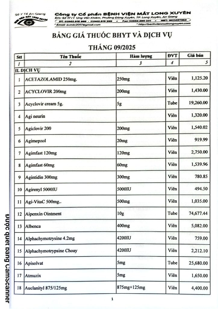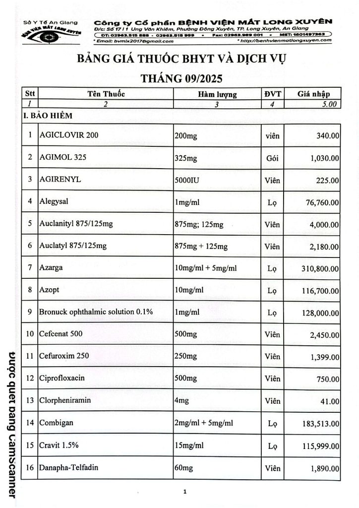 BVMLX: Bảng giá thuốc BHYT và Dịch vụ tháng 09/2025