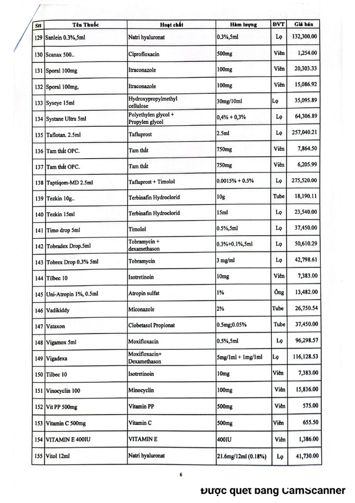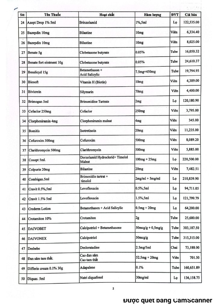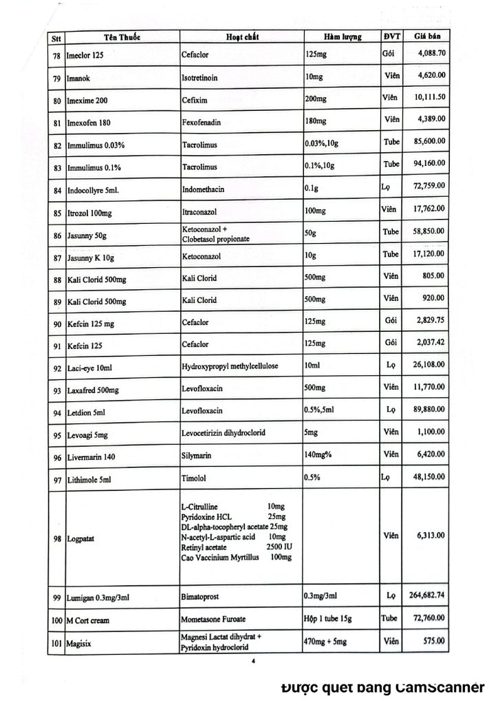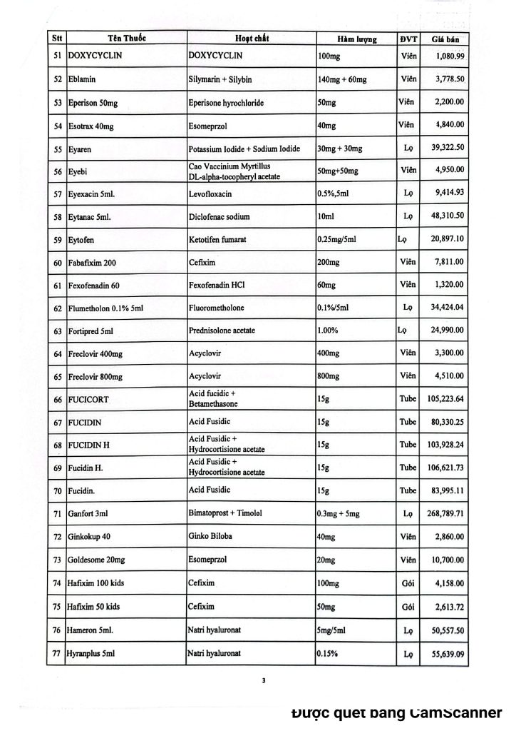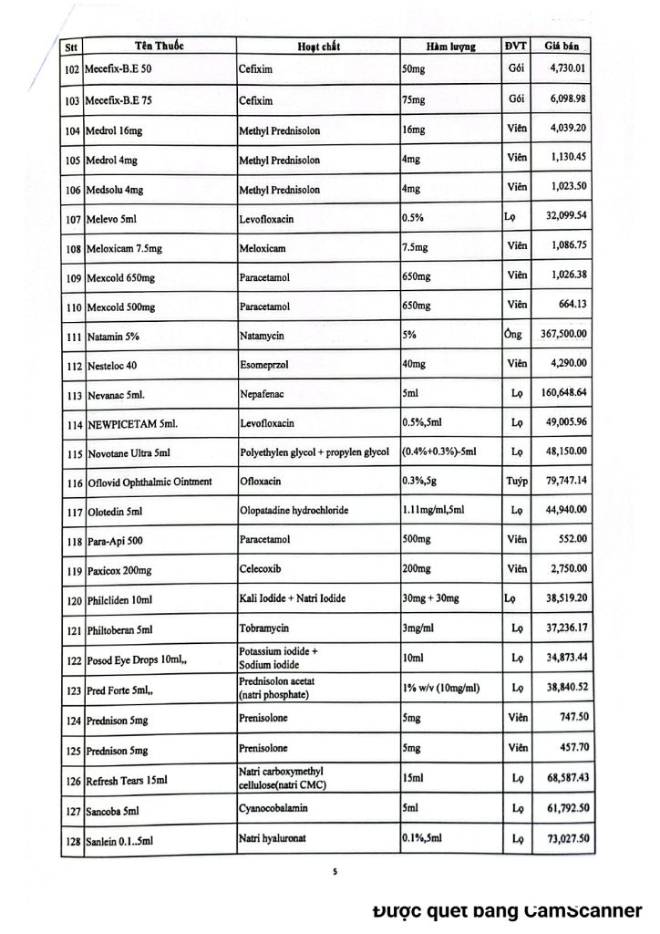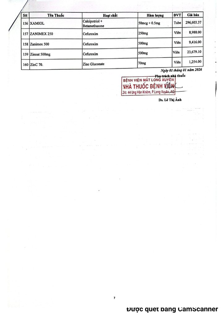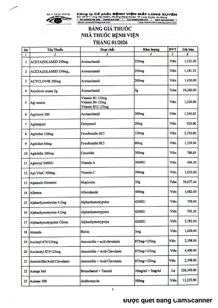 BVMLX: Bảng giá thuốc Nhà thuốc Bệnh Viện tháng 01/2026